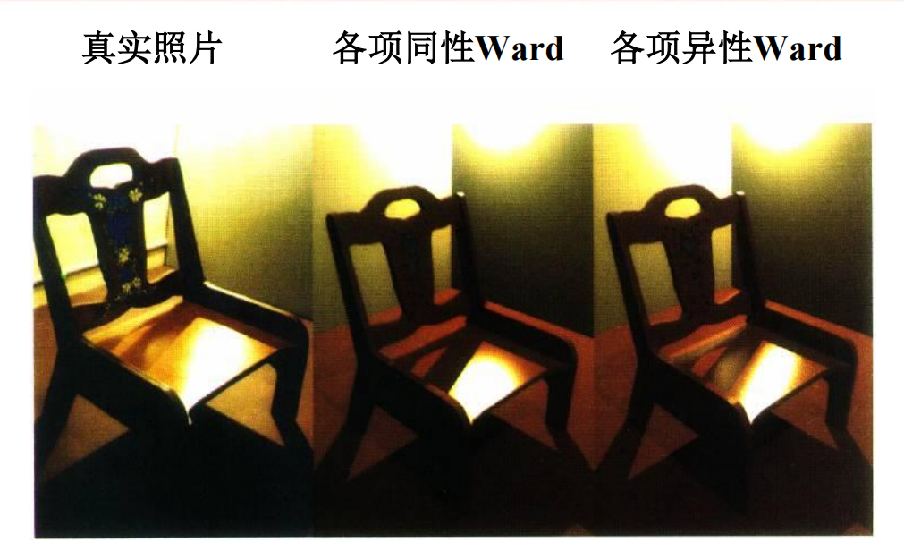 Phong 和 Cook-Torrance 的原始形式通常是各向同性的。Ward 模型是处理各向异性反射的一个较早的著名模型。